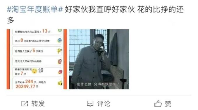 每年的淘宝账单,也被认为年终最大迷惑之一,因为这一天,很多网友几乎会发出同一个灵魂拷问:我哪来的钱花那么多???钱到底花哪里去了???