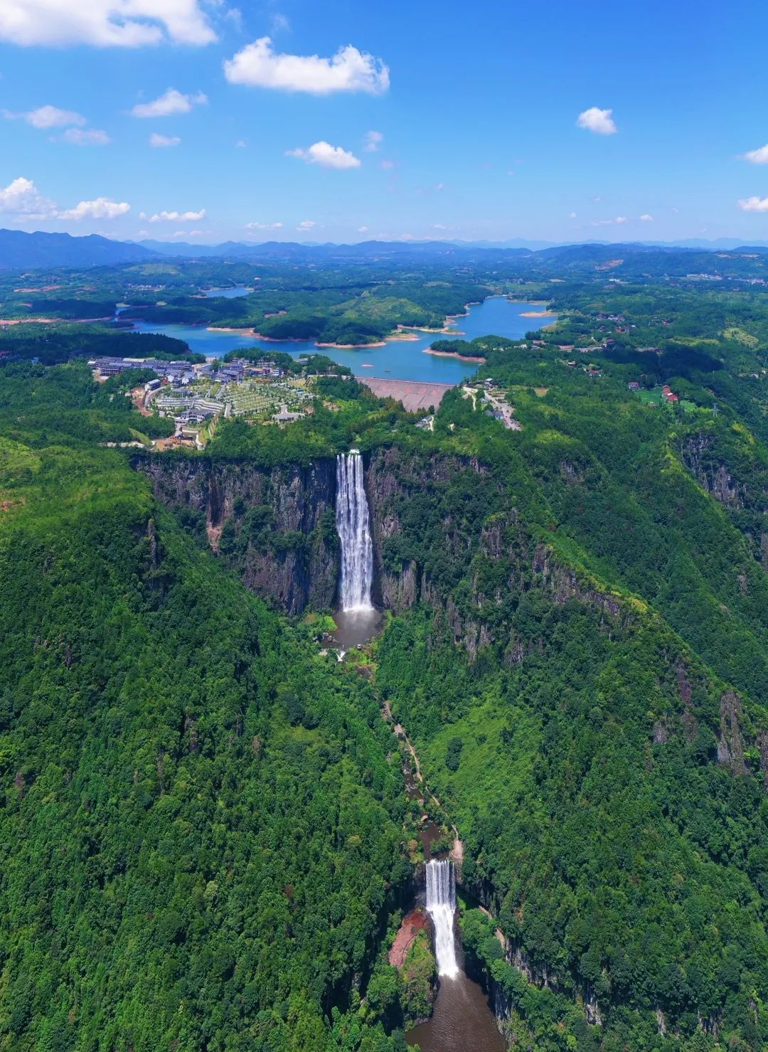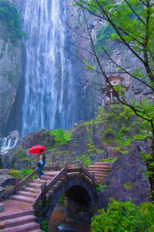 百丈漈三级瀑布高度合计287米,折合鲁班尺100丈盈17米。有"一漈百丈高,二漈百丈深,三漈百丈宽"之誉,每一级都有不同的飒爽英姿。