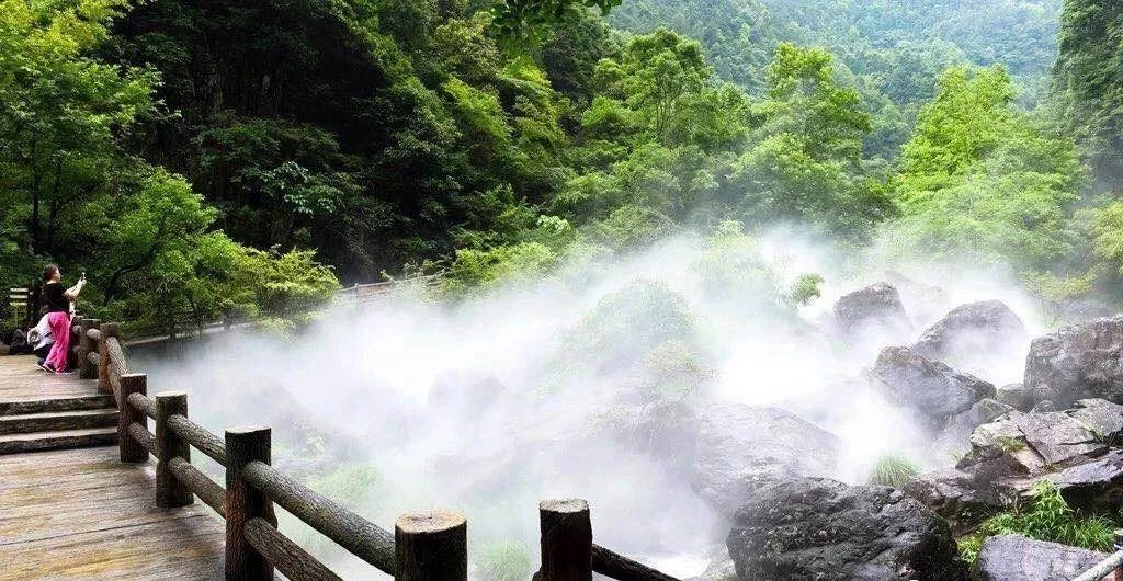 百丈漈还有独有的“雾森”景观,一层淡淡的水雾,溪流中的大石则若隐若现,云雾缭绕间,宛若仙境。游客既可以在远处观赏,也可置身于若隐若现的茫茫雾海中,呼吸着清新的空气。
