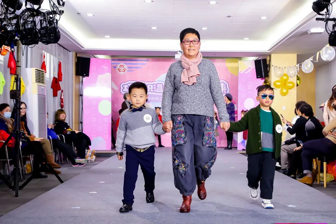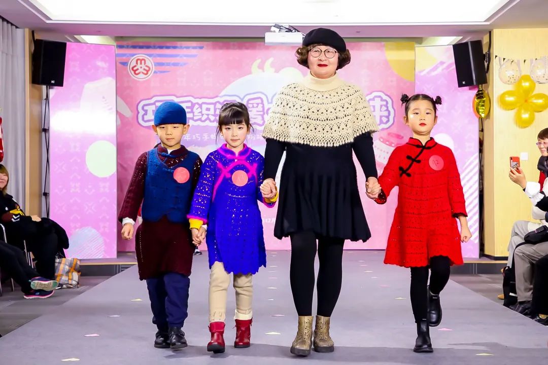 走秀最后一环节在巧手妈妈们的亮相中推向了高潮,6位巧手妈妈代表分别带领穿着自己作品的小模特们走上T台进行展示,如此风格多变,针法细腻的毛衣们正是来自杨浦区计生家庭的巧手妈妈们精心之作。