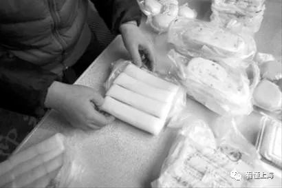 “年糕领回来了?这趟年糕好唻,喏,捏捏看,鼓卜卜的”。
