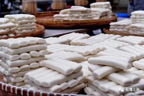 晒干的年糕片还可当零食吃,拿去小贩处爆炒米花,体积顿时放大几十倍,香喷喷热烘烘地当场吃,与今日的爆玉米花十分神似,是上海市民人家小孩子最熟悉的零食。
