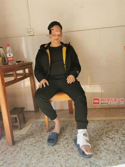 ▲罗先生的脚被酒吧保安打断。本文图片均为南国早报记者周伟武 摄