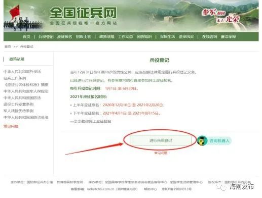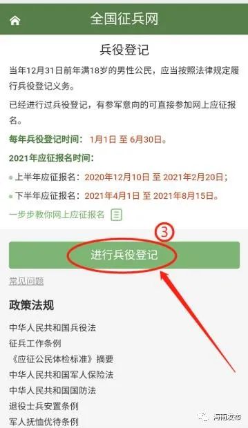 1月5日,海南省征兵办根据《中华人民共和国兵役法》《征兵工作条例》,发布了海南省2021年兵役登记有关事项通告。内容如下:
