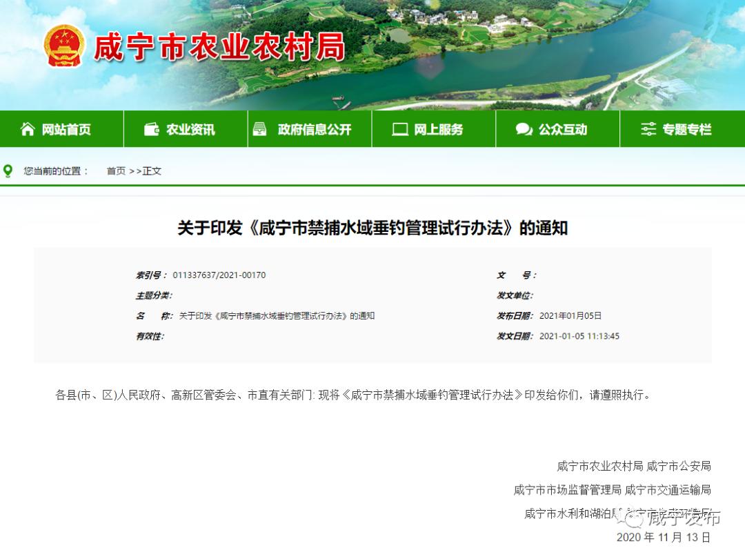 咸宁市禁捕水域垂钓管理试行办法