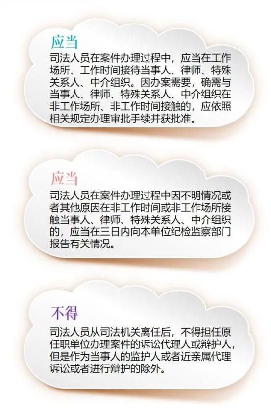 ●《关于进一步规范司法人员与当事人、律师、特殊关系人、中介组织接触交往行为的若干规定》