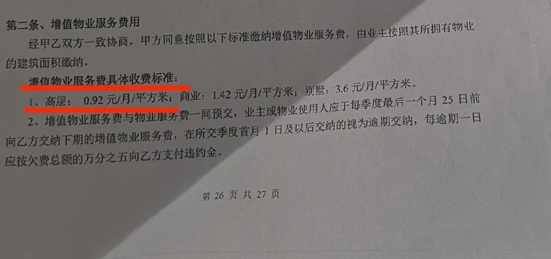 业主与开发企业签订购房的购房补充协议中并没有写明物业服务增值具体内容约定,只是将政府审批收费标准与增值服务费叠加,以“物业服务费”2.52元每月的标准让业主签字认可,混淆降低业了业主辩识度。