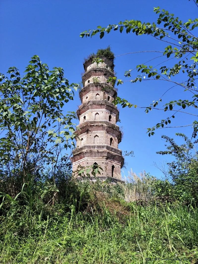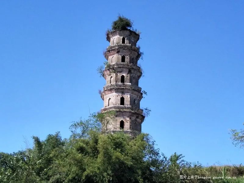 当汽车行至迁江镇大村村民委扶济村附近时,一座古塔巍然耸立在左前方,这就是迁江八景之一的文辉塔。