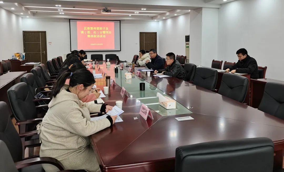 2020年12月29日下午,红谷滩区委常委、宣传部长、红谷滩新区工委委员邓越峰对区委宣传部领导班子及各镇、街(处)分管宣传工作领导同志开展政治谈话。区纪委区监委、区委组织部相关负责人应邀参加。