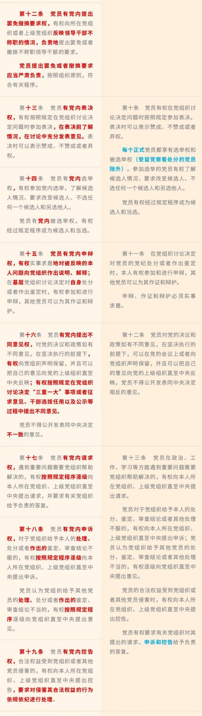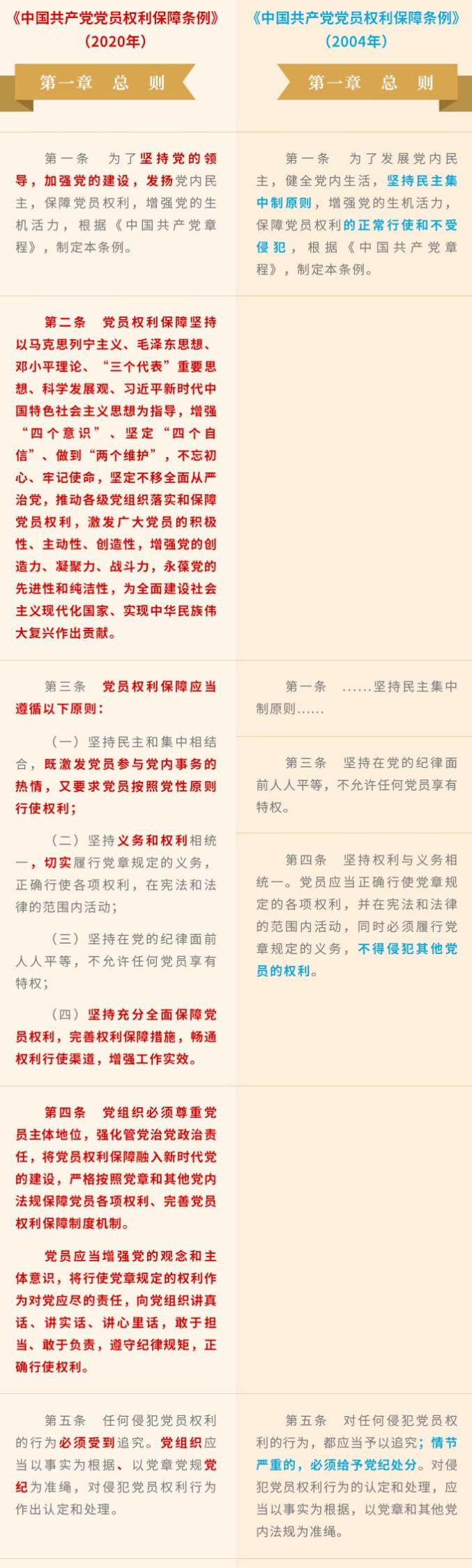 原标题:《明确党员13项权利!《中国共产党党员权利保障条例》最新修订(附修订前后对照表)》