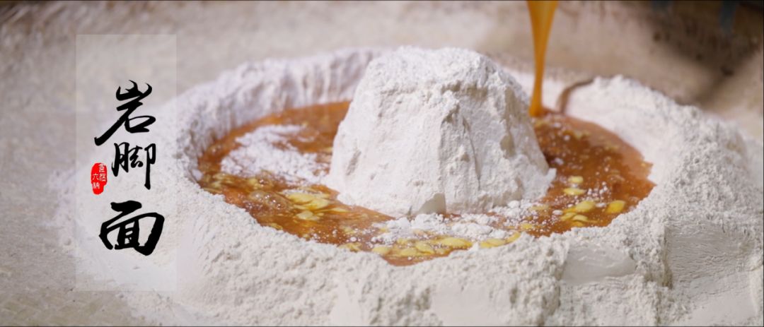 岩脚面,距今已有 350 多年历史。因生产于溶洞众多矿物质和微量元素丰富的喀斯特环境中而具有香、滑、劲、脆的独特风味,精选当地优质小麦,通过2次石磨碾压,加入当地的泉水,成品细如银丝,脆如春笋。外地人称赞曰:“好看不过斗笠汉,好吃不过岩脚面”。