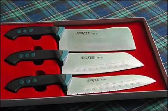 安顺“三刀”——指菜刀、剪刀、皮刀,其中菜刀以刀刃锋利、式样古朴美观、适用耐用为特点,是贵州省地方名特产品。安顺市菜刀厂生产的“古钱牌”刀在首届全国轻工业博览会上被誉为“最受欢迎的产品”,荣获银奖,该厂现可生产各式菜刀、砍刀、水果刀等27 个品种,年产量39万把。