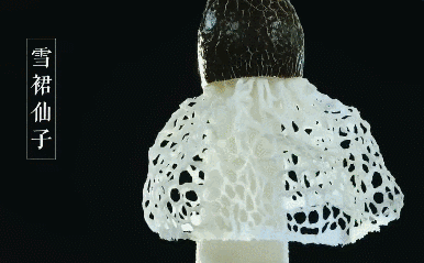 因产于贵州省毕节市织金县而得名,全名为织金红托竹荪。红托竹荪是贵州特色品种,在红色的伞盖下,菌丝宛如花季少女的长裙般自然散开,雪裙仙子之名由此而来。在贵州有“竹荪炖鸡鸡完整,三秒不见竹荪影”的说法,足以说明竹荪有多受欢迎。