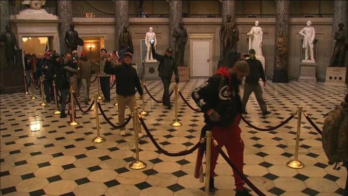 该官员表示,他们已成功将暴徒从参议院侧翼赶到圆形大厅,正将他们从国会大厦的东西门赶出。