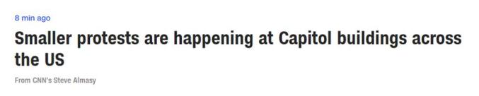 美国有线电视新闻网(CNN)消息称,全美多地议会大厦都发生了小规模的抗议活动。