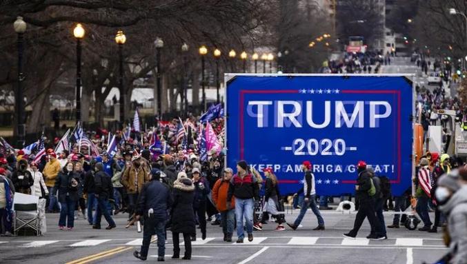 当地时间1月6日下午,数百名抗议者聚集在美国首都华盛顿特区,为支持特朗普进行示威活动,以向正在进行的国会联席会议施压。随后,示威游行转向暴力倾向,部分示威者进入美国国会区域,并攻破了国会大厦,议员们随后被紧急疏散。