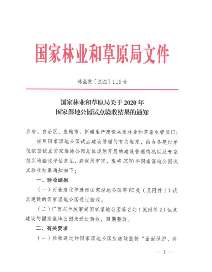近日,国家林草局公布2020年国家湿地公园试点验收结果,内蒙古阿尔山哈拉哈河国家湿地公园试点顺利通过国家验收,为阿尔山林业局有限公司增添了一张“国字号”生态名片。