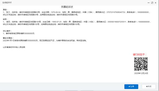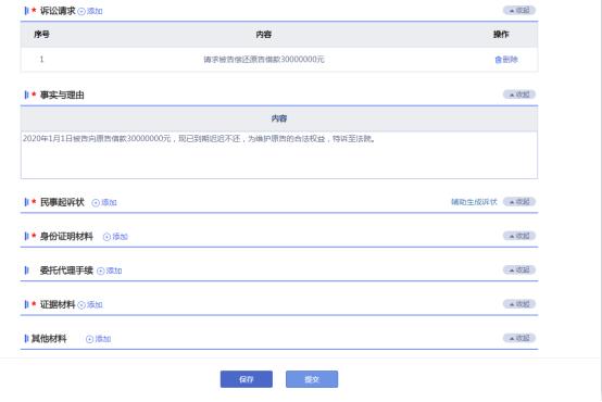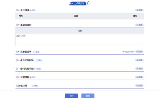 根据系统提示进行填写立案信息,红星号提示为必填项,并上传相应诉讼材料。