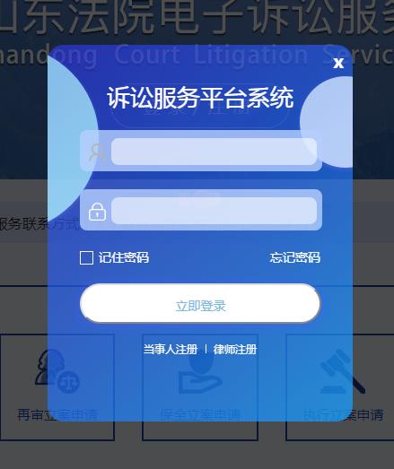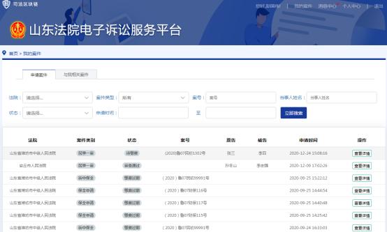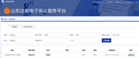 注册成功后登录平台,选择相应案件类型,(此处以民事一审案件为例)点击“一审立案申请”