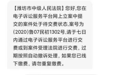法院审核成功立案后,当事人会收到缴费通知短信,登入平台后界面显示网上交费,点击“网上交费”