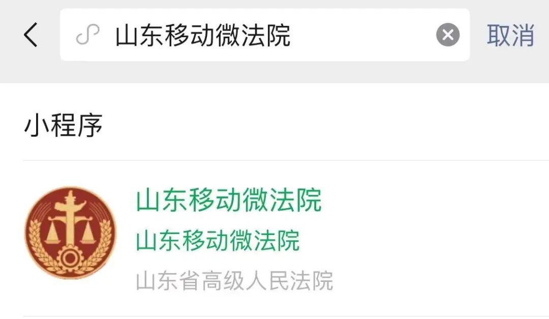 搜索“微信--发现--小程序”,输入“山东移动微法院”或扫描下方二维码