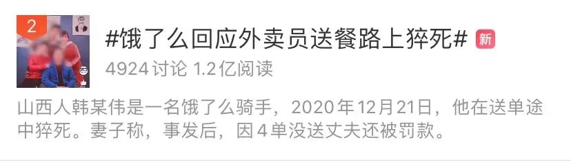 原标题:《饿了么外卖员在送餐时猝死!平台:只给2000元人道主义费用》