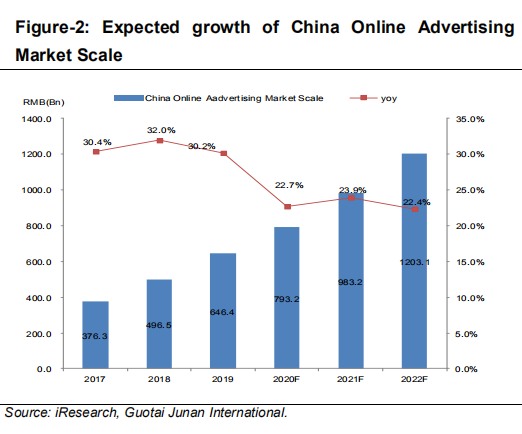 随着宏观经济反弹,中国在线广告市场将再次回到增长通道。