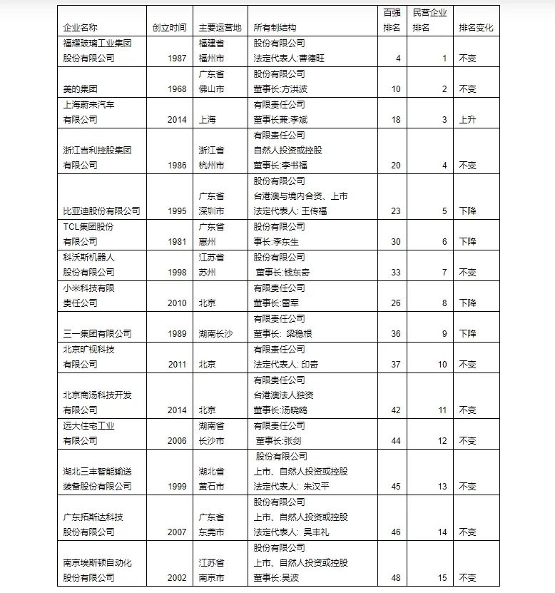 《中国智能制造民营企业15强》如下。我们选出前15家民营中国智能制造企业,称为CRE15。