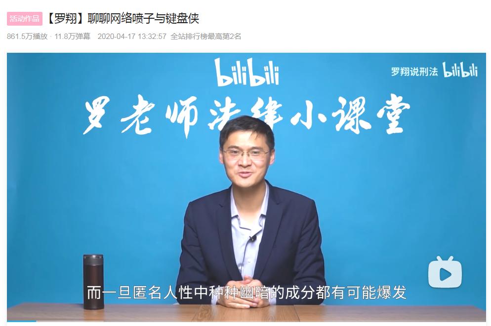 B站千万粉丝up主,中国政法大学刑事司法学院教授。