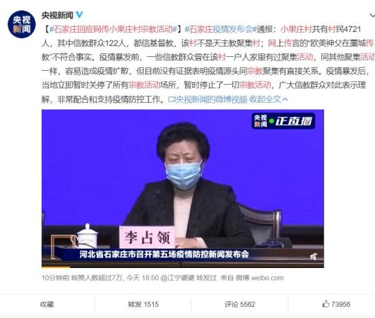 发布会上,石家庄相关负责人表示,小果庄村共有村民4721人,其中信教群众122人,信仰基督教,该村不是天主教聚集村;网上传言的“欧美神父在藁城传教”不符合事实。