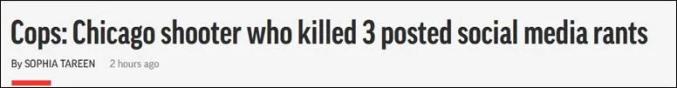 据美联社1月10日消息,1月9日,32岁的枪击者南丁格尔在芝加哥南部多个街区“随机”射击,造成3死4伤。当晚,警方在城北的一处停车场中将其击毙。