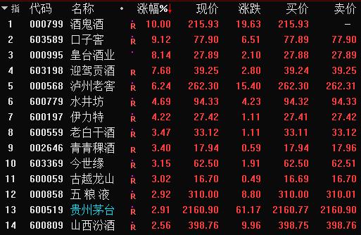天风证券认为,随着白酒春节销售旺季将近,企业进入春节备货状态,市场对涨价预期强烈,同时酒企2020一季度基数效应下业绩弹性即将释放,叠加货币流动性充裕,白酒结构性景气度不减。2020年酒企控货提价是关键词,2021年产品结构上行打开盈利增量仍是白酒企业主旋律。