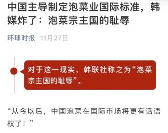这个说法引发了韩国朝野的剧烈反弹。韩国农业部对相关报道的回应如下:“如果没有将泡菜与中国四川的泡菜区别开来,就报道泡菜获得ISO认证是不恰当的。”韩国网友也纷纷跳出来捍卫自己的文化传统。