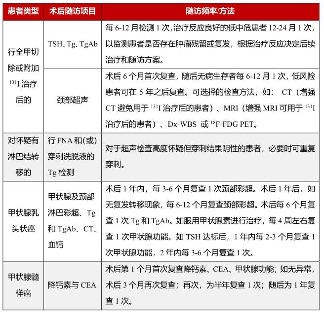 表3各类DTC术后患者的随访及检查项目