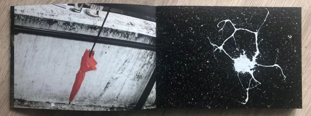 在我筹备编辑摄影集的初期,曾考虑以什么样的形式或图案做封面。优先想到的就是乌鸦拉的这坨屎,就没再改动,最终定了它。这个不规则状的图案,散落在人行道上,形成了独特有趣的肌理。这本摄影集印刷后,我采用了很多不规则的“破坏”手法,形成“错位”的阅读空间,这种不规则裁剪后得到的照片,也呼应了封面那坨鸟屎,达到了内容与形式的统一。