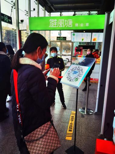 ▲1月13日,记者在淇滨区一家超市看到,疫情防控措施升级,顾客进入超市前需佩戴口罩、扫健康码、测体温。(晨报记者 王玉姣 摄)