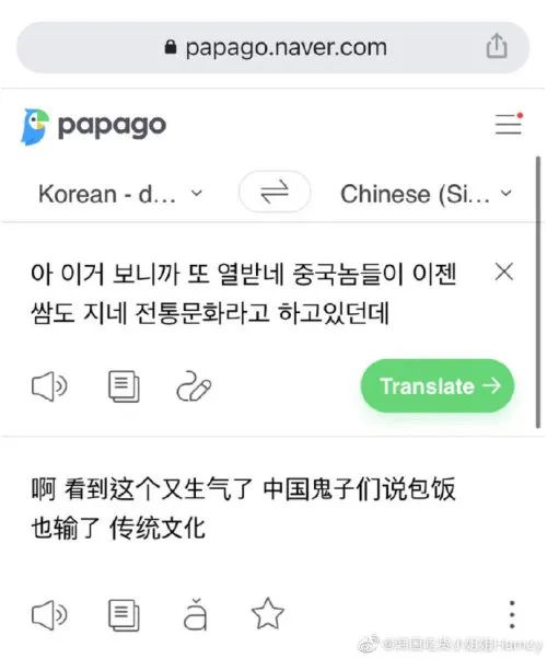 翻译还提到,“中国家伙”这个词在韩语中很中性,却被网友使用的机翻写成了“中国鬼子”,才造成了大家的误解,原意没有这么偏激。