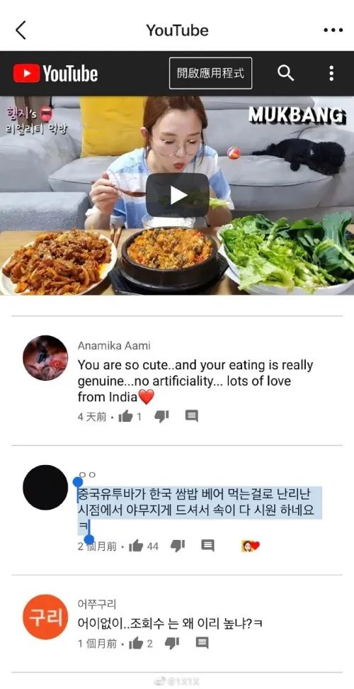 原标题:《在中国"圈钱"还点赞讽刺中国的评论?韩国美食博主道歉》