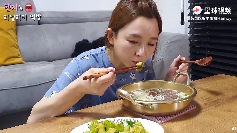据悉,韩国美食博主Hamzy在中国有几百万粉丝,她展示做饭和吃饭的过程,收获了不少粉丝的喜欢。