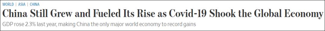 《华尔街日报》的报道就指出,2020年的优异表现,不仅能让中国经济的规模更快地赶超美国,同时也有助于全球经济的整体发展。
