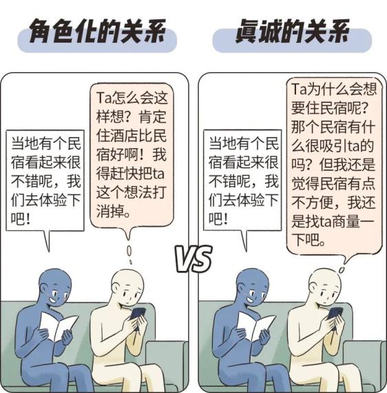 因此,我们鼓励大家摆脱过度角色化,以更真诚的方式投入关系。