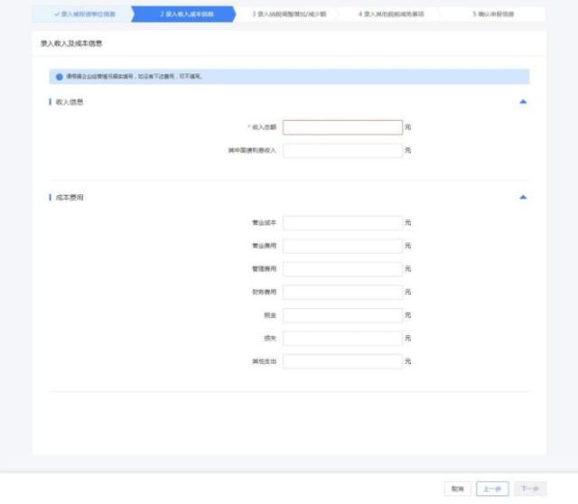 录入收入成本信息,其中带*号为必填项,其他项目根据企业实际情况填写;