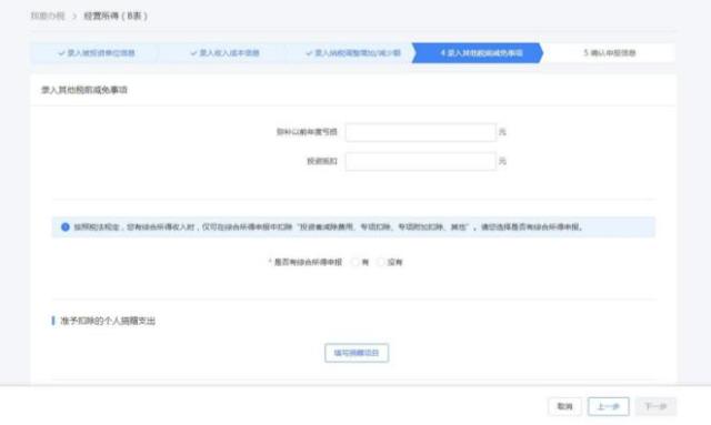 录入其他税前减免事项,若企业没有相关纳税数据可直接点击【下一步】;