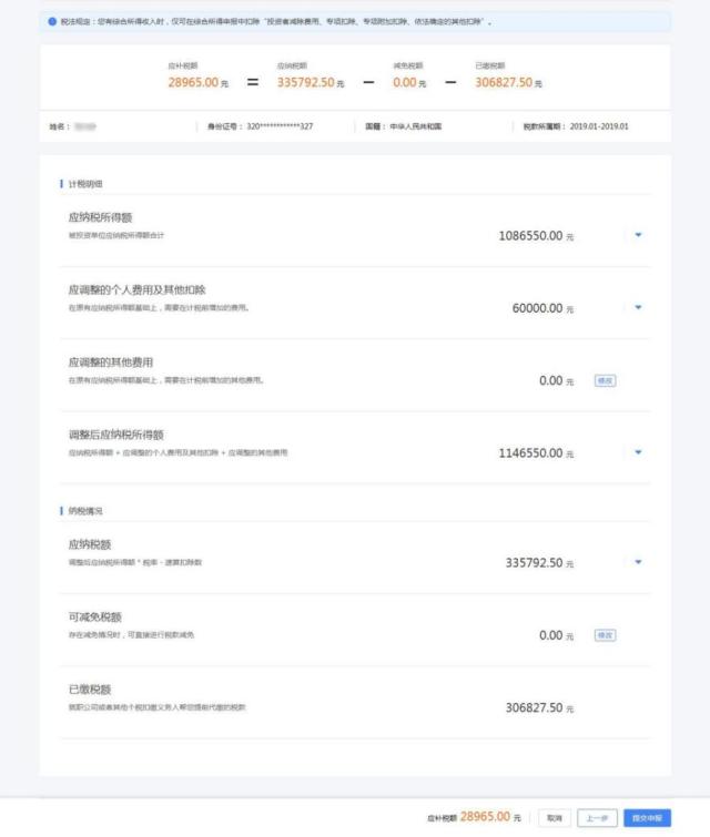 【应补/退税额】:由计算公式计算而得,不可修改。