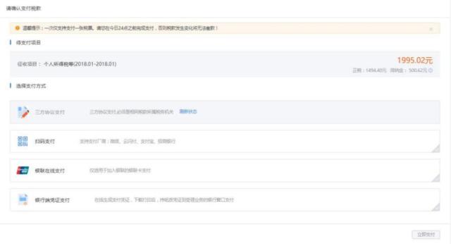 未签订三方协议缴款的纳税人,可选择银联在线支付完成缴款。