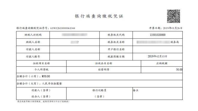 银行端查询缴税:打印银行端查询缴税凭证后至商业银行缴款。