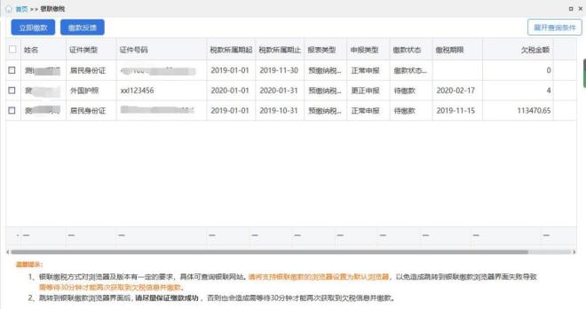 3.只针对本地申报成功且欠税的记录进行缴款,如果客户端重装,申报数据丢失,只能通过其他渠道缴款。