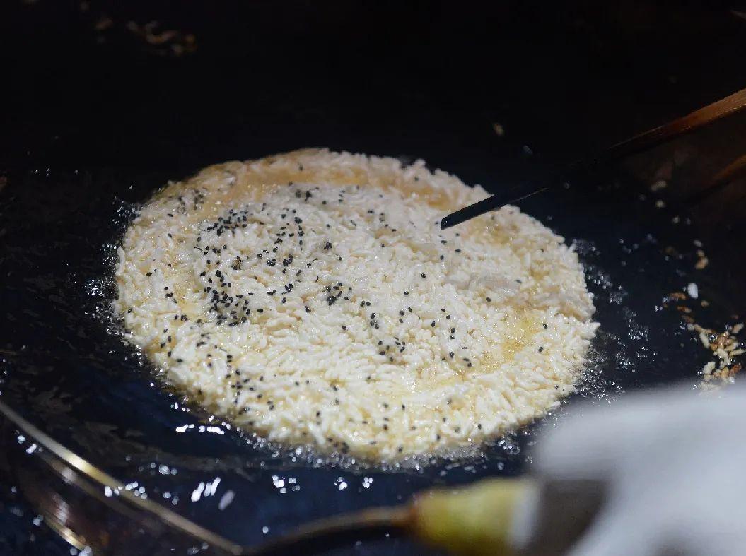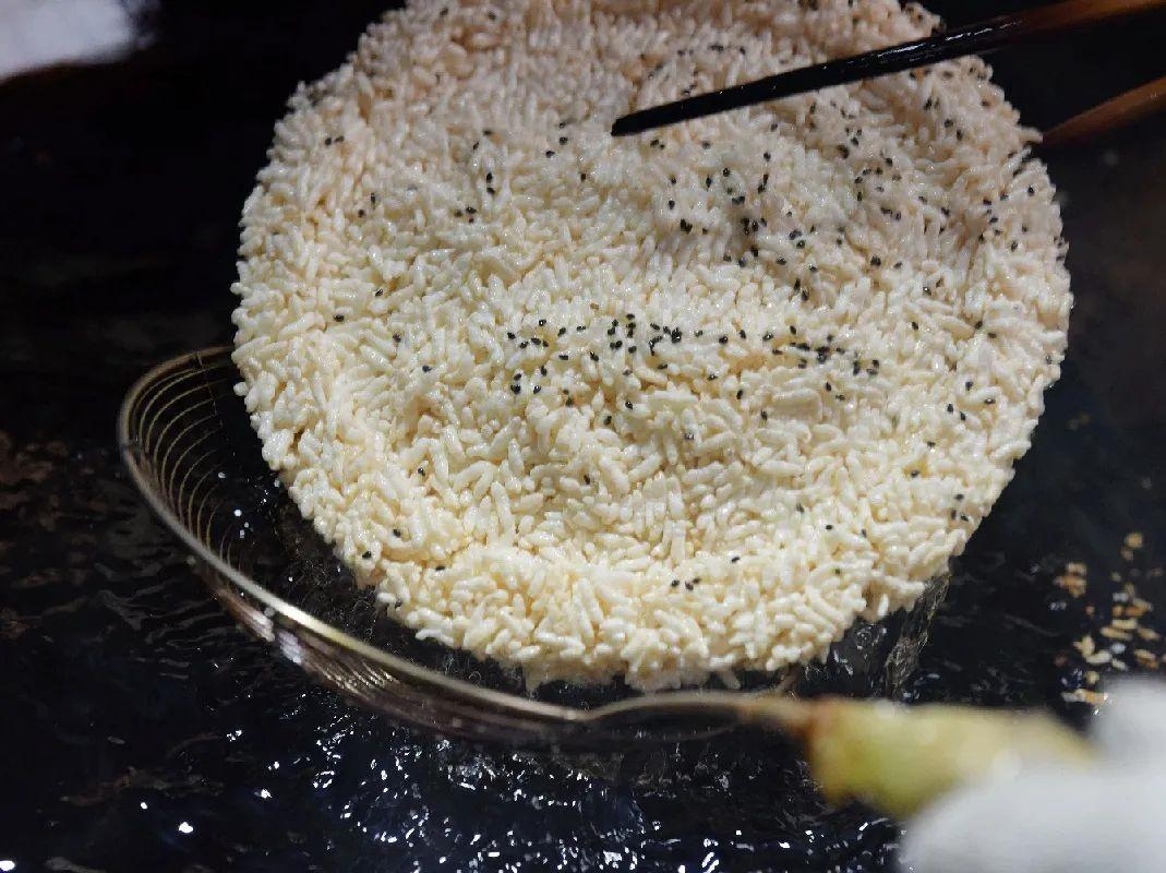 “糯米要选纯净、粒大、黏性好的,我们采用的糯米都是自家种的,置容器中浸泡后再放置蒸笼中蒸,这个火候和熟度要掌握得好,”李老板介绍,糯米过熟则板结,难透气,打胚时难脱模,油炸时难松散,吃时硬而不脆;熟度不够,则粘性差,作胚时易散不成形,油炸时会爆裂不完整。