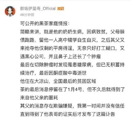 12月29日,“墨茶Official”留言说:“我老想吃草莓了。最近被病折磨的吃什么吐什么,然后特别特别想吃草莓。。。可惜草莓太贵了。”。从这个留言分析,“墨茶Official”可能已经发生了酮症酸中毒。12月31日他留下的最后一句话是:“然而我还在病床上躺着,令人感叹。”