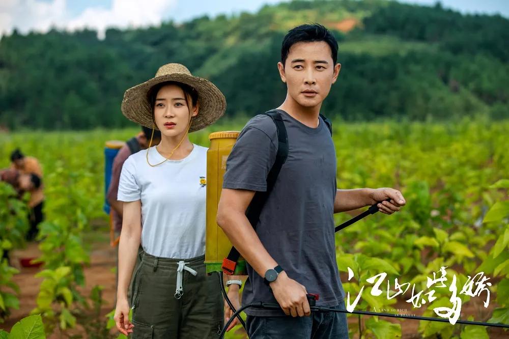 首先这部剧里的农村是多方面多维度的。《江山如此多娇》扎根于乡土文化,以精准扶贫作为话题点,迎合着农村一线管理者年轻化的趋势,讲述了“扶贫二代”濮泉生与都市女记者沙鸥在碗米溪村一起带领当地村民脱贫致富的故事。